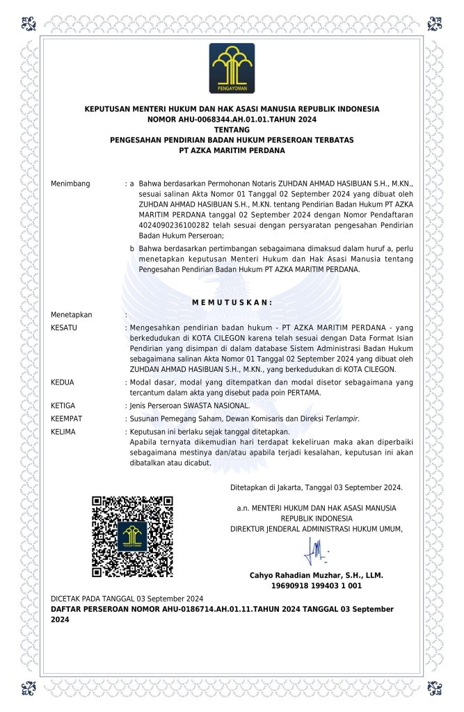 SK Pengesahan Pendirian Badan Hukum Perusahaan